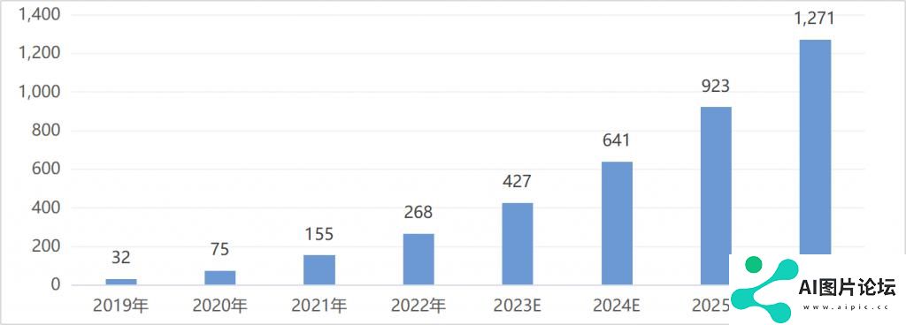 图表 1:2020-2032E 全球生成式 AI 收入及预测(单位:10 亿美元)
